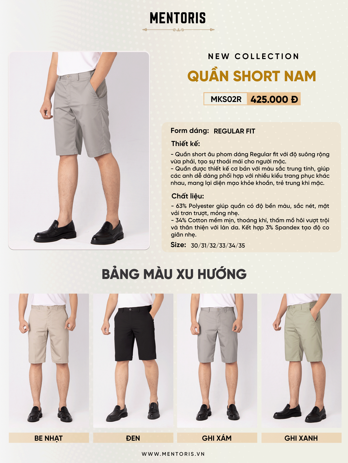 Quần Short nam KaKi MENTORIS Cao Cấp, Chất vải mềm mại, hoa tiết caro in chìm sang trọng MSR202R nổi bật với phom dáng Regular Fit tôn dáng, thoải mái, dễ chịu trong mọi hoạt động. Đây là phom dáng thông minh với độ dài vừa vặn, phù hợp với mọi lứa tuổi, mọi dáng người. Thiết kế cạp cúc tinh tế mang đến diện mạo lịch lãm cho nam giới. Túi vát 2 bên cùng túi sau tiện lợi, chắc chắn, thích hợp để đựng ví, điện thoại hay thẻ bên mình.